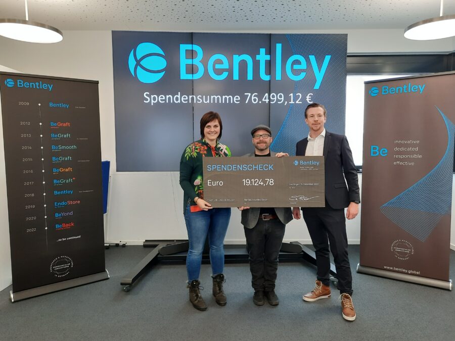 Bentley-CEO Sebastian Büchert und Personalmitarbeiterin Sarah Hofmann übergaben am Donnerstag die Spendenschecks. Büchert erklärte: „Das Engagement und das Mitgefühl unserer Mitarbeiter berühren mich einmal mehr. Zum wiederholten Mal haben sie unter Beweis gestellt, dass sie ein großes Herz für Kinder, Jugendliche und deren Familien haben, die sich in einer sehr schwierigen Lebenssituation befinden.“